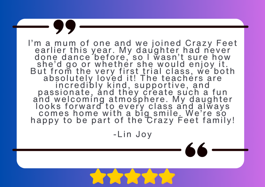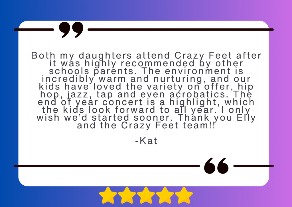 Melbourne. It was established in 1992 and is still one of Melbourne’s leading dance schools. Katie Rappel, founder of Crazy Feet, believes it is important that dance be accessible to all children.